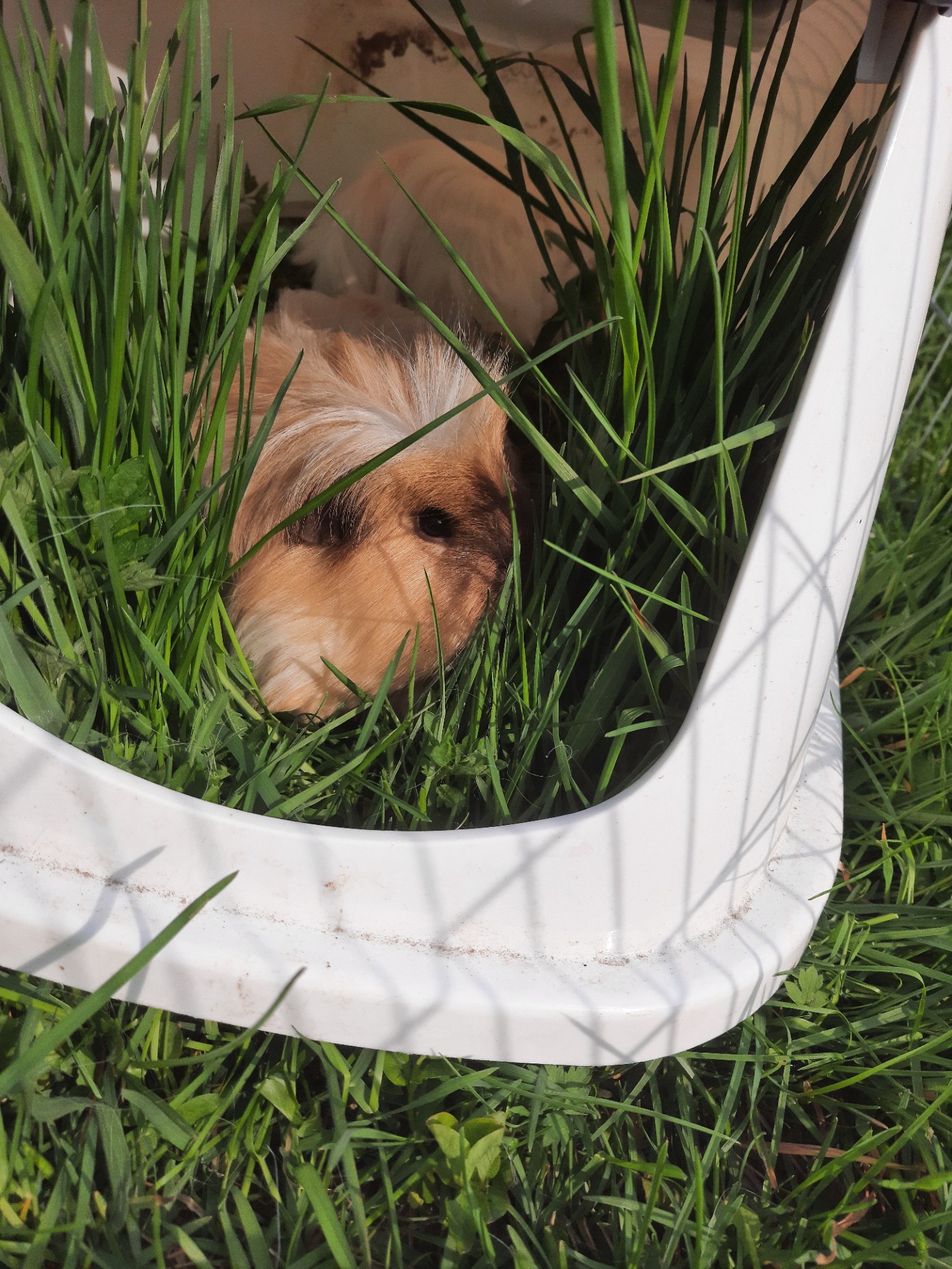 Ons Stella, een lilac wit Peruviaan zeugje van 5 maanden jong.