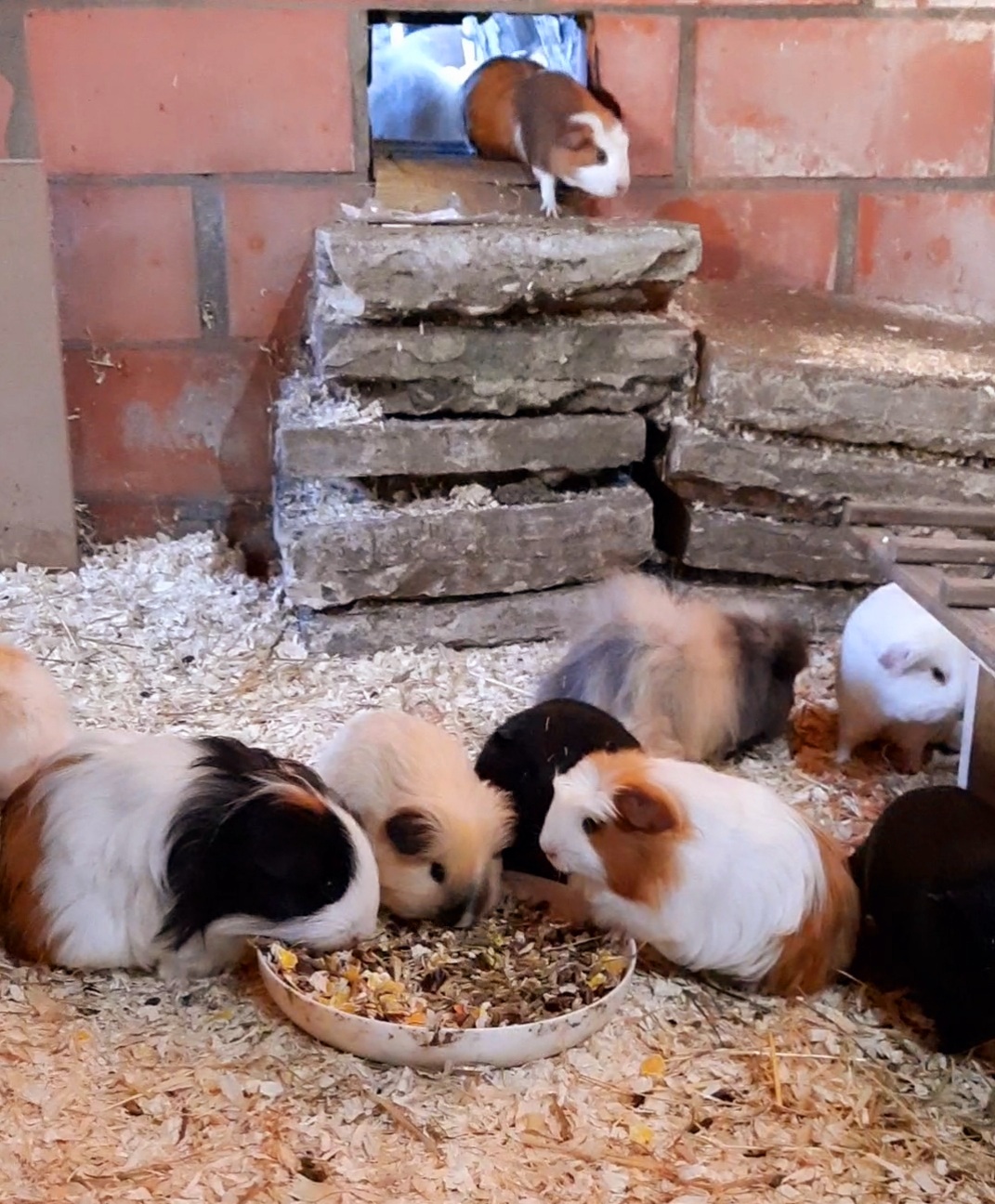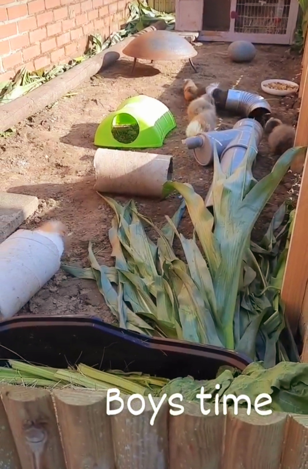 Plexiglas kan je gemakkelijk eruit schuiven zodat ze ook eens vrij kunnen rondlopen.