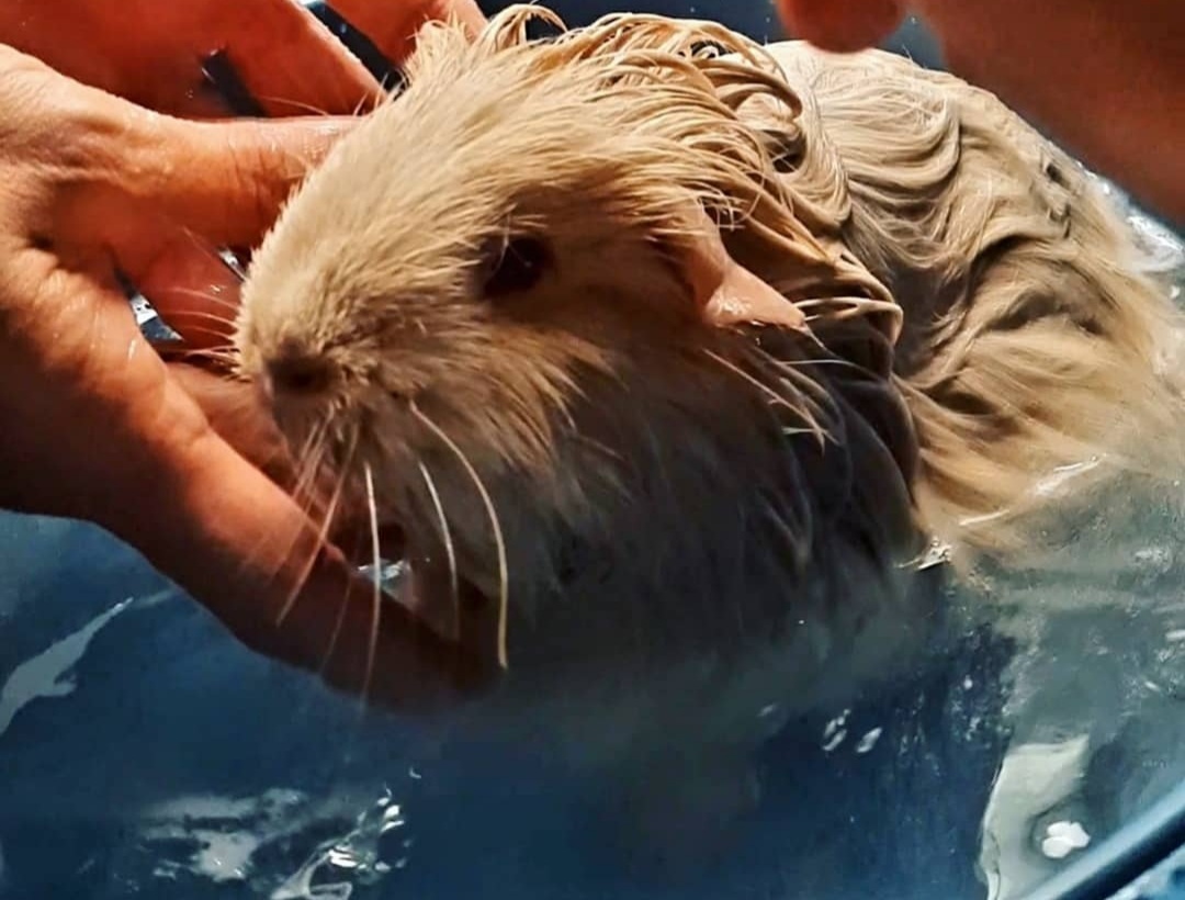 Cavia's wassen hun eigen maar als ze echt vuil zijn kan je hun een badje geven. Ze vinden dit niet echt super leuk maar ze weten wel dat je het doet om hun te verzorgen. Dus voor je hun een badje geeft zorg dan dat jouw cavia op zijn gemak is bij jou.